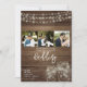 Sätt tonen för din landsbyfest med dessa rustika bröllopsbrevpapper med en varm träbakgrund, lysande slingor och charmiga murskålar. Perfekta för ladubröllop, utomhusfiranden eller mysiga kvällsceremonier, skapar denna rustika design en välkomnande och romantisk atmosfär. Anpassa med era namn, bröllopsdetaljer och evenemangsinformation för att skapa den perfekta inbjudan / brevpapper som speglar er rustika stil.