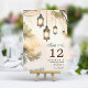 Rustika Träd Botaniska Lykta Ljus Bröllop Bord Nummer. Vacker elegant akvarell bröllopsdesign med rustika hängande lyktor. Denna anpassade moderna bröllopsdesign kan enkelt anpassas med dina egna bröllopsdetaljer.