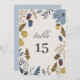 Rustika nummer på bröllopsbord med höstlöv inbjudningar