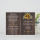 Rustik landsbröllopskortdesign med akvarellsolrosbuketter, en halvgenomskinlig form med en texturerad ram, pilar med hjärtan och solrosor som avdelare, allt på en gammal lada bakgrund. Använd verktyget Anpassa för att lägga till din information. Matchande föremål finns i min Rustic Sunflowers Old Barn Collection.