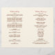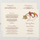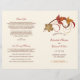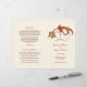 Bröllopsprogram med hösttema med elfenbensvit bakgrund med eleganta rullar och löv i höstfärger. Anpassa den anpassade texten för ditt brölloppsfölje, ceremonidetaljer och tackmeddelande. Notera: dessa program med text på papper anländer platt och kräver vikning för att monteras.