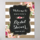 Rustika remsor med randiga blommotiv Bröllopsdusch skylt Poster.