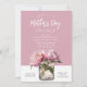 Rustika skripta bröllopsrosor Morbrunch inbjudan - En vacker, unik, elegant och modern inbjudan till morbrunch. Med en masonburk med en bukett rosa peonior mot en mjuk rosa bakgrund. En kombination av skript kalligrafi och elegant blockstil, denna chic mors dag brunch inbjudan utstrålar sofistikering och tidlös elegans. Redigera denna mall för inbjudan till mors dag med dina egna evenemangsuppgifter. Oavsett om du planerar en lunch, brunch eller middag kan du enkelt redigera mallen. Finns även som en omedelbar digital nedladdning, perfekt för att skicka via e-post, sms eller sociala medier.
