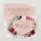 Rustika rosor i burgundy och rosafärgade bröllopsd tack kort