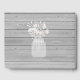 Vår "lantliga" kollektion har en bakgrund av grå träplankor med ljusrosa slingrande ljus och en genomskinlig murskål som innehåller en bukett av ängsrosa blommor. Denna varsamma men lantliga kollektion är vacker för utomhus lantliga bröllop men har också en dos av elegans tack vare ett urval av pastella färger som passar för alla tillfällen. Lätt att anpassa med din egen information och dina egna foton. Kolla vår butik för fler matchande artiklar från denna kollektion.