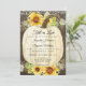 "Rustika Solrosblommor Änglaljus Pumpa Trä Bröllopsinbjudan." Fira din höstbröllop med en elegant, men ändå enkel rustik solrosmotiv med vit pumpa-design som målats för hand i akvarell. Änglaljus glimmar över en rik mörk återvunnen lada-träbakgrund för en rustik men elegant design perfekt för en krisp höstdagsbröllop! Konsten är målad för hand av Audrey Jeanne Roberts. Komplett set finns tillgängligt för samordning. Upphovsrätt.