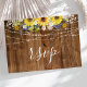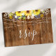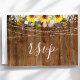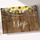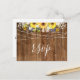Rustika Solros Strängljus Bröllop Svar På Inbjudan Postkort. Denna design har vackra solrosor mot en rustik träd bakgrund med gnistrande strängljus. Anpassa denna anpassade design med alla dina svarsinformation.