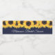 Vattenflasketiketter med rustikala solrosor i marinblå vackra och läckra för dina bröllopsduschgäster.