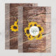 Denna design har rustika solrosor på en träbakgrund. Solroskransen inramar elegant vigselfdatumet. De gula, gröna och bruna färgtonerna skapar en rustik naturlig känsla av en lantlig trädgård. Den opaka kanten framhäver solrosens mittpunkt. Baksidan visar en rustik trästruktur tillsammans med de blommande solrosorna. Elegant bröllopsinbjudan med moderna element. Matchande bröllopspapper och andra format för bröllopsinbjudningar finns också tillgängliga.