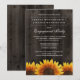 Rustika Solrosförlovningsfestinbjudningar - med en bakgrund av lada trä med rustika solrosor längst ner.