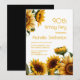 Elegant blommig inbjudan till 90-årsfest med gula solrosor på vit bakgrund. Kontakta mig för hjälp med dina anpassningar eller för att begära ytterligare matchande eller samordnade Zazzle-produkter för din fest.