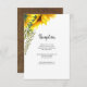 Det här bröllopskortet med rusticerade blommor erbjuder en elegant akvarellsolrosbukett accentuerad med grönska. Detta kort låter dig lägga till mottagningsdetaljer för dina gäster.