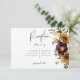 Denna enkla men eleganta bröllopsinbjudan har en rustik akvarellbukett med burgunderröd, solrosgul, krämfärgade och lila blommor med grönska. Det är en del av den Rustika sommar solrosor & burgunderröda blomster bröllopssvit som skapats av Simply Farmhouse Press.