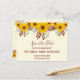 Det här postkortet för att spara datumet är en rustik hösttema bröllopsdesign med gula solrosor. Perfekt för höst- och höstbröllop. Hitta den matchande bröllopsinbjudan här: https://www.zazzle.com/rustic_sunflowers_and_pumpkin_fall_wedding_invitation-256303006091985139