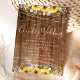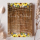 Rustika solrossträngljus lantlig bröllopsinbjudan. Söta akvarell lantliga solrosor, strängljus, på en rustik trähylla.