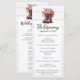 Informera gäster med denna lätta anpassningsbara programmall med ceremonischema på framsidan och officiell lista över bröllopspartiet på baksidan. Eleganta akvarellblommor möter rustika lantstövlar för vacker kontrast i lantlig stil! Förtjusande akvarellestetik med en färgrik överdådig bukett av ljusa blommor. Perfekt shabby-chic-lantgårdsstämning för ett avspänt, modernt bröllop i en ladugård och mer!