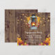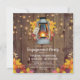 Rustika country-förlovningsfestinbjudningar med en trädriftsbakgrund, höstlöv, en tänd lykta, strängljus och en modern bröllpsmall.