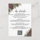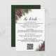 Detta vackra inkluderingkort är utformat för att ge dina gäster ytterligare information om mottagningen, boendet, researrangemangen, registret, webbplatsen, anvisningar, RSVP eller andra detaljer som dina gäster kan behöva. Har en rustik men ändå elegant guld- och vitdesign med handmålade akvarelltallkottar och skogsgröna tallgrenar. Designen inkluderar en anpassningsbar QR-kod för att göra det enkelt för dina gäster att komma åt din webbplats online.