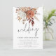Rustika blomster i terrakotta Informell skrivstil Bröllop. Eleganta blommor och bär och gräs i mjuka terrakotta bruna och krämfärgade nyanser flödar ner från toppen. Bröllop är i en uppsättning trendig handstilsstil. Anpassa enkelt resten av texten till dina egna detaljer. För gästernas bekvämlighet att svara och se fler detaljer kan de skanna QR-koden som leder till er bröllopswebbplats. Din QR-kod genereras automatiskt för att uppdatera exempelkoden i designen när du helt enkelt byter exempel-URL i mallen med din egen bröllopswebbadress.