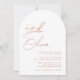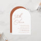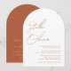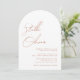 Moderna eleganta minimala och enkla rustika terrakotta kalligrafi manus namn i modern typografi bröllopsinbjudan detaljer på baksidan av inbjudan.