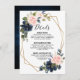 Mörk navyblå blomstergeometrisk bröllopsinbjudan detalj-kort med elegant bukett av navyblå, kunglig blå, vit, rosablush och salvia grön eukalyptusblad och elegant glittergeometrisk neutral ram. Vänligen kontakta mig för hjälp med anpassning eller om du behöver någon annan produkt med denna design.