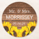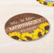 Rustika Trä Solros Mr och Mrs Bröllopspresent Underlägg Papper Rund
