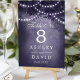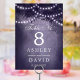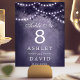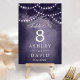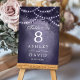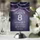 Belyser din rustika bröllopsmottagning med dessa förtrollande bordsnummer. Med en majestätisk skogsträdssilhuett prydd med gnistrande strängljus mot en romantisk lila bakgrund, tillför dessa bordsnummer en touch av magi till din speciella dag. Perfekta för utomhus- eller inomhusfiranden, skapar de en varm och inbjudande atmosfär för dina gäster.