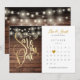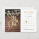 Denna eleganta rustika "save the date"-kort har en chic gyllene typsnitt "save the date" på en rustik träpanel och strängar med lampor i bakgrunden, plus en kalender och ett vackert gyllene hjärta som markerar det speciella datumet. Designad av Thisisnotme©