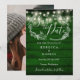 En rustik "Spara datum"-kort med ömtåliga blomillustrationer på en smaragdgrön bakgrund av träpaneler. Personliggör med din speciella information och foto på baksidan. Designad av Thisisnotme©