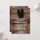 Cowgirl och Cowboy mottagning Inbjudan med silhuetter av ett par som kramar varandra mot en träbakgrund. Designen har strängljus, westernpar, en bra inbjudan för mottagningar, bröllopsfester, grillfester och mer. Anpassa med dina festdetaljer, det perfekta valet för ditt kommande country-tema evenemang. Oavsett om du är värd för ett rustikt bröllop, en ladufest, en western-inspirerad fest eller någon annan tillställning med en touch av country charm, kommer denna inbjudan säkert att skapa stämningen och fånga essensen av din händelse.