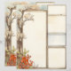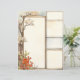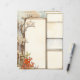 Rustika vattenskift blomstermönster skrivande plats ramar med röda blommor och träd med rosa och vita blommor.