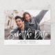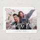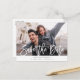 Ett enkelt foto-bröllop spara datum-kort med vit text. Du får gärna anpassa fotot och text.