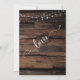 Här är en slående inbjudan för din efterbröllopsfest. Bakgrunden var först täckt med ett foto som visar grovt bearbetat mörkbrunt trä med horisontella linjer. Toppen på båda sidor var draperad i en grafik som antyder strängar av gnistrande starka ljus. Era detaljer framträder i vitt. För att komplettera det sans-serif-teckensnitt som användes för er redigerbara text, har jag lagt till nyckelord och accenter "vi gifte oss", "och", plus "kärlek" på baksidan med ett vackert, modernt kalligrafisk teckensnitt.