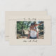 Meddela din speciella dag med detta rustika minimalistiska Spara datum-vykort, med ett anpassat foto i full bredd och elegant skrivstil. Perfekt för utomhus-, destination- eller avslappnade bröllop, håller denna moderna design fokus på ditt foto medan du delar viktiga detaljer om bröllopet. Anpassa enkelt med era namn, datum och plats för en stilren och hjärtlig annons som era gäster kommer att älska.