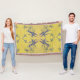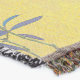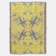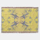 På denna kastfilt har det känsliga, ursprungliga mönstret med mörkblå blad på en rustik gul bakgrund utseendet av gammaldags, lantlig fransk tyg. Mönstret gjordes från ett originalfotografi av petuniablad.