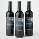 Rustikt Blått Trä Vitt Blommönstrat Övningsmiddag Vinflaska Etikett