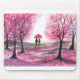 Rustikt bröllop kärlekspar körsbärsblomstrande träd konstverk. Bröllopsjubileum, bröllopsinbjudningar, Alla hjärtans dag. Romantiskt par, brud och brudgum, första dejten, första kärleken. Rosa körsbärsblommor träd. Hemdekor. Girlig chic-dekor.