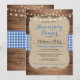Ändra texten så att den passar din jubileumsfest. Denna rustika trä- och blå-rutiga inbjudan är den perfekta kombinationen för en romantisk elegant look. Bakgrundstryck ingår