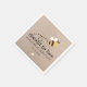 Pappersservett med illustration av ett bi med "menat att vara" i klassisk typsnitt över kraftpapper.