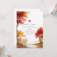 Bröllopsinbjudan till hösten med akvarell höstträd och en stig som leder till framtiden. perfekt för ditt höstbröllop.