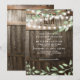 Gröna vingårdsbröllopsinbjudningar med en lantlig lada mörk ekfat bakgrund, gnistrande strängljus, populär vattenfärg grön lövverk, din monogram och en modern bröllopsmall. Hitta andra träbröllopsinbjudningar på http://www.zazzle.com/special_stationery