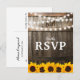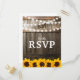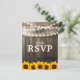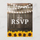 SOLROS VINODLING SVARSKORT | Country barndark oak fat bakgrund, twinkle strängljus, gyllene gula solrosor, ditt monogram och en modern RSVP mall. Hitta andra trä svarskort på http://www.zazzle.com/special_stationery