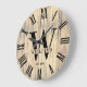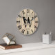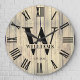 Personligt familjenamn, monogram och etableringsår Rustik modern väggklocka i en trendig gårdshusstil med romersk sifferklocka och ljus vit träplank / shiplap bakgrundsdesign. Perfekt gåva till nygifta, bröllop eller husvärmegåva eller gåva till mor- eller farföräldrar, eller för en hemrenovering i din stuga, cottage eller lanthus.