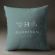 Mot en klassisk dammig blå bakgrund har denna kudde en initial som omges av rustika grenar tillsammans med efternamn och etableringsdatum. Den stilrena färgen kan ändras för att matcha din inredning genom att klicka på "anpassa". Denna kudde är en fin bröllops- eller nygiftgåva eller också en "första julen" som gåva till ett nygift par.