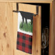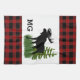 Försköna hemmet eller stugan med denna kökshandduk i rustik stil. Handduken har en röd och svart buffelmönstrad bakgrund med en älg siluett överst. Personifiera handduken med din monogram.