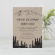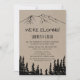 Denna rustika skogsbröllopsinbjudan för mottagning är perfekt för en skogspartaj efter bröllopet. Den naturinspirerade designen har siluetten av en tallskog och berg på falskt kraftpapper. RSVP-kort säljs separat.