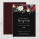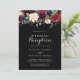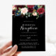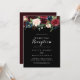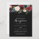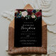 Denna rustika svarta botaniska bröllopsinbjudan är perfekt för en klassisk efter-fyfembryo-fest. Designen har burgunderröda, röda, marinblå, blå och rosafärgade strålande och graciösa handmålade blommor på svart bakgrund, som inspirerar till naturlig skönhet.