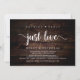 Vacker Inget Tjälligt Utan Bara Kärlek fest, Bröllops Flykt Meddelande / Inbjudningskort, i Modern Rustik Brun Mörkt Trädesign. Detta är perfekt för din bröllopsmottagning och efterbröllopsfirande. Lägg till dina detaljer i matchande typsnitt / bokstäver.