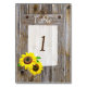 Rustikt trä och solros bord nummer bröllop bordsnummer