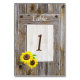 Söta country och västlig stil slitna trä och solros bordnummer kort för din bröllopsmottagning.